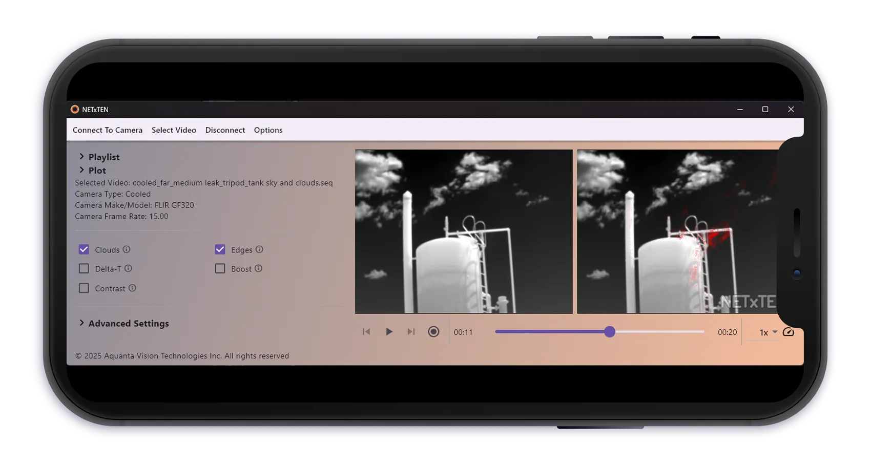 Works with Teledyne FLIR and Sierra Olympia OGI cameras raw video output
